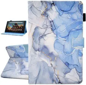 Funut Case for All-New Fire HD 10 Tablet (9th/7th/5th Generation, 2019/2017/2015 Release), Slim PU Leather Folio Stand Smart Cover with Auto Wake/Sleep for Kindle Fire HD 10.1 inch,Blue White Marble