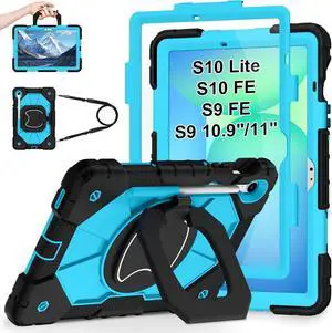 Galaxy Tab S10 Lite/S10 FE 5G Case 10.9-11 with 360° Rotating Hand/Shoulder Strap & Kickstand Heavy Duty Shockproof Cover with Built-in Screen Protector S Pen Holder Kids Friendly