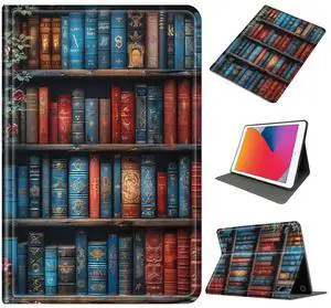 Slim Case for All-New Kindle Fire HD 10 & 10 Plus Tablet (11th Generation, 2021 Release) 10.1" PU Leather Lightweight Stand Adjustable Smart Shell Cover with Auto Wake/Sleep,Old Library Bookshelf