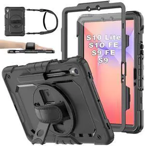 BASE MALL Case for Samsung Galaxy Tab S10 Lite/ S10 FE / S9 FE 10.9 Inch / S9 11'' 5G Protective with Screen Protector/Pen Holder/Hand Strap, Heavy Duty Shockproof Tablet Cover for S10 Lite, Black