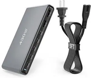 GaN5 430W USB C Charger Block Charging Station,7 Port Fast Charging Block with Dual 100W USBC Multiport Adapter TypeC & USBA Desktop Charger for iPhone17/16/15/14/13/Pro Max/MacBook Pro/Air/iPad