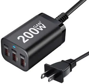 GAN USB C Charger: 100W,96W,87W,85W,67W AC Adapter - 4 Port Fast Compact PD Wall Block - Type-C High Speed Charging - Travel Adapter for MacBook,Surface,(+5 ft Extension Cable)