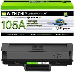 greencycle 105A Compatible Black Toner Cartridge Replacement for HP 105A 105 W1105A High Yield to use for Laser MFP 137fnw 137fwg 135wg 135a 135ag 135w 135r 107a 107w 135r 107r Printer (1-Pack)