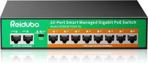 10-Port Gigabit Managed PoE Switch, 8 PoE+ Ports@120W, 2 Uplink Ports, VLAN, PoE Scheduler, Fanless, Plug and Play, Sturdy Metal, Desktop and Wall-Mount