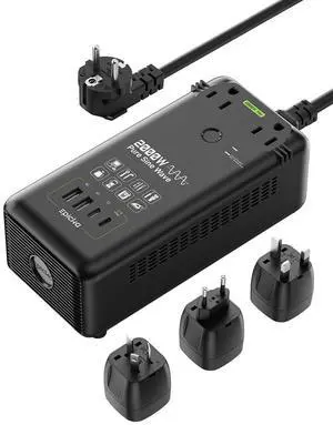 EPICKA 2000W Pure Sine Wave Voltage Converter, 220V to 110V Power Transformer with 20W PD USB-C Fast Charging, 2 AC Sockets, 4 USB Ports (2A + 2C), Universal Travel Plug Adapter for EU/UK/AU/JP, Black
