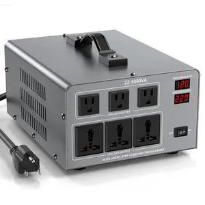 6000W Voltage Converter Transformer Step Up/Down 110V/120V to 220V/240V, Auto Voltage Recognition, Heavy Duty Power Converter with 6 Outlets, LCD Display & Circuit Breaker for Home, International Use