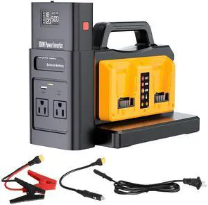 Pure Sine Wave Inverter Compatible with Dewalt 20V Battery, 2 in 1 500W 4 Ports Power Inverter Battery Charger Generator DC 20V to AC* 2 Outlets, 120V Car Charger Plug, USB&Type-C (Tool Only)