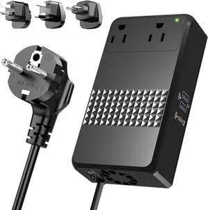 220V to 110V Voltage Converter, 600W AC Sockets Power Any American Appliances Overseas, 48W GaN USB Charger, Universal Power Plug Adapter Voltage Converter US to Europe International Travel