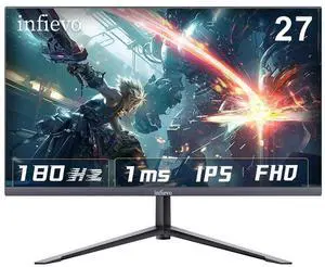 INFIEVO Gaming Monitor 27 Inch FHD 1080P Computer Monitor 180Hz IPS 1ms, FreeSync, Ultra-Thin PC Monitor, VESA Compatible, Tilt Adjustable, Eye Care Technology, HDMI/DP