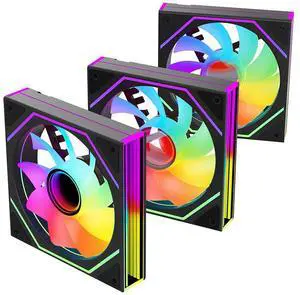 Super Flower, MEGACOOL 120mm fan, Triple-Pack, 12-pole motor design, super cooling performance, PWM, Purple Anti-Vibration Mounting Pads, Computer Case Fan, Remote Control, SF-PF121-BK_3P, 30mm depth- Type: Case Fan