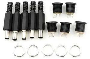 JAENFONG 10Pcs (5Pair) 12V 3A 5.5x2.1mm DC Power Male Plugs Connector DC Power Socket Female Jack Screw Nut Panel Mount Adapter 5.5*2.1mm