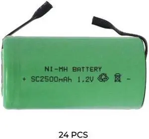 24-Pack Sub C NiMH 2500 mAh Batteries with Tabs