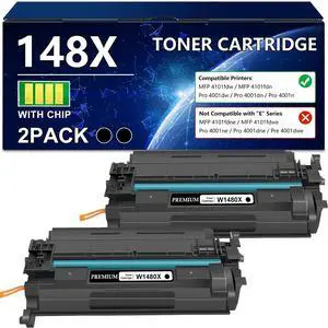 148A Toner Cartridges W1480X Toner 2-Black (with Chip) Compatible Replacement for hp 148A W1480A 148X W1480X Toner Cartridge Work for Laser Jet Pro 4001dw 4001dn 4001n MFP 4101fdw 4101fdn Printer