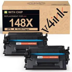 v4ink 148X W1480X High Yield (with Chip) Compatible Toner Cartridge Replacement for HP 148A 148X W1480A W1480X for HP Pro 4001 4001n 4001dw 4001dn MFP 4101 4101fdw 4101fdn Printer Ink (2-Pack Black)