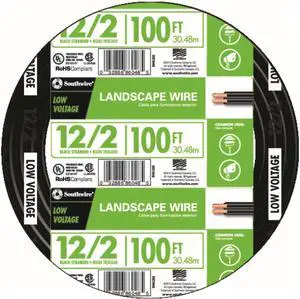 Southwire 55213443 100-Feet 12-Gauge 2 Conductor 12/2 Low-Voltage Underground Direct Burial Landscape Lighting Cable, Black