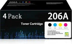 206A Toner Cartridges 4 Pack Pro MFP M283fdw M283cdw Compatible with HP 206A 206X HP206A W2110A Toner Cartridges Set(with Chip) for Color Laserjet Pro MFP M283cdw M283fdw M255dw M255nw Printer