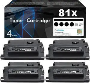 81X High Yield Toner Cartridge Black CF281X: 4 Pack Compatible M605 Toner Replacement for HP 81X CF281X 81A CF281A Laser Enterprise M605 M606 Series; Laser Enterprise MFP M630 Series Printer