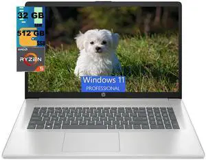 HP 17.3" Full HD IPS Notebook,AMD Ryzen 5 5500U Processor,32GB DDR4 RAM,1TB SSD,AMD Radeon Graphics,Wifi-AC,Bluetooth,USB,HDMI,Windows 11 Pro