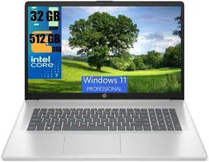 HP 17 Laptop, 17.3" FHD (1920 x 1080) Display, Intel 7 150U 10-Cores Processor, Intel Graphics, 32GB DDR4  512GB PCIe SSD, Wi-Fi 6 (2x2) and Bluetooth 5.3, Windows 11 Pro
