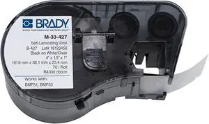 Brady - 143271 M-33-427 Vinyl B-427 Black on White/Clear Label Maker Cartridge, 4" Width x 1-1/2" Height, For BMP51/BMP53 Printers