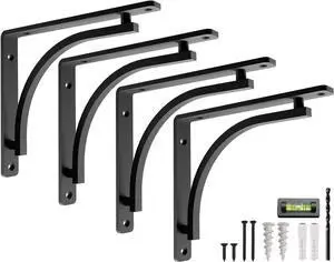 FstNiceTed Rustic Corner Floating Shelves 4 Pack - Paulownia Wood Wall Shelves with Triangular Metal Brackets, 88lbs Capacity - Multifunctional Storage for Bedroom, Kitchen, Living Roo