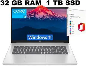 HP Business Laptop, 17.3" HD+ Touchscreen, Intel Core i5-1334U, 32GB RAM, 1TB PCIe SSD, Webcam, FP Reader, Wi-Fi 6, Backlit Keyboard, Windows 11 Pro, SilverProcessor Name: Intel Core i5-1334UMemory: 32GBSSD: 1TB PCIeGPU/VPU: Intel UHD GraphicsModel #: ESSENTIAL17T8213-I_CTO_N2