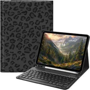 TopPerfekt for iPad Pro 11" 4th/3rd/2nd/1st Gen (2022/2021/2020/2018) Bluetooth Keyboard Case with Screen Protector 2 Pack 9H Hardness Tempered Glass, Detachable, with Pencil Holde-Notebook Cow Black