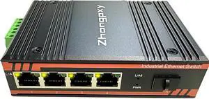 Industrial Ethernet Switch 4×Gigabit RJ45 + 1×SFP Fiber | 5-Port Unmanaged DIN-Rail Switch | IP40 Aluminum | 1252V DC | -40~80 | Compact Industrial Network Switch