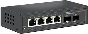 6 Port Unmanaged 2.5G Ethernet Switch with 4 x 2.5G RJ-45 Base-T Ports, 2 x 10G SFP+, Ports Speed Auto-Negotiation-100/1000/2500Mbps, One-Key VLAN, Plug & Play, Fanless & Metal