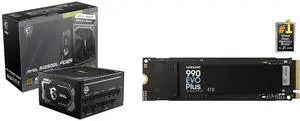 MSI MAG A1250GL PCIE5, Fully Modular Compact Gaming 1250W Power Supply, 80+ Gold, ATX 3.1 & PCIe 5.1 Ready, Native Dual-color 12V-2x6 cable, 10 Year Warranty SAMSUNG 990 EVO PLUS SSD 4TB, PCIe Gen 4x4 | Gen 5x2 M.2 2280, Speeds Up-to 7,250