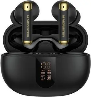 Monster N-Lite 211 Wireless Earbuds Bluetooth 6.0 Stereo Headphones with Noise-Cancelling Mic and LED Display, Built-in Mic for Clear Calls, Waterproof Design for Sports