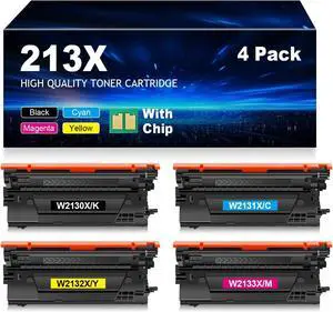 213X High Yield 4-Pack (with Chip) Toner Cartridge Replacement for HP 213X 213A W2130X W2130A Color Enterprise 5700 6700 6701 MFP 5800 MFP 6800 6801 Printer| Black Cyan Magenta Yellow