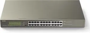 Tenda TEG1124P, 24 Port PoE Switch Gigabit with 24 x PoE+ @ 250W, Unmanaged Desktop/ Rackmount PoE Switch 24 Port, Plug & Play, Fan-Less Metal Design, Easy Smart, Limited Lifetime Protection