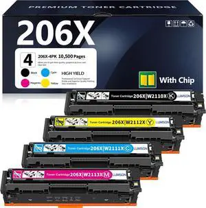Compatible Toner Cartridge Replacement for HP 206X 206A for Color Laserjet Pro MFP M283fdw M283cdw M283fdn M282mw Pro M255dw M255nw M283 M255 Printer W2110X W2110A High Yield (BCMY, 4-Pack)