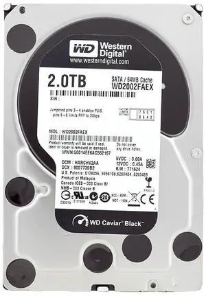 Western Digital Black WD2002FAEX 2TB 7200 RPM 64MB Cache SATA 6.0Gb/s 3.5" Internal Hard Drive Bare Drive