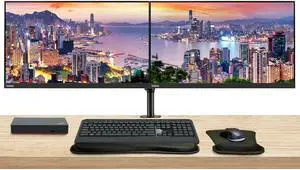 HP V27i G5 27 inch 1920 x 1080 FHD LCD Monitor, 2-Pack Bundle with HDMI, VGA, and Display Port, Desk Mount Dual Monitor Stand, MK270 Wireless Keyboard and Mouse, Gel Wrist Pad, and USB-C Dock