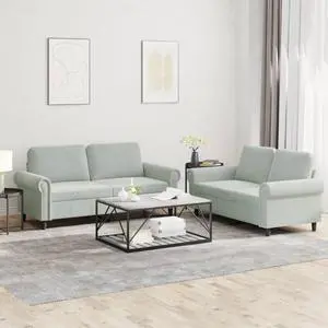 vidaXL Sofa Set with Cushions Accent Loveseat Couch 2 Piece Light Gray Velvet