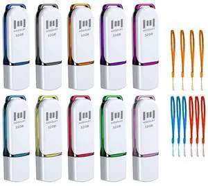 MOSDART 32GB USB 2.0 Flash Drive 10 Pack 32 GB Bulk Thumb Drives with Lanyards Jump Drive Memory Stick with LED Light for Storage and Backup