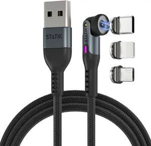 360 Magnetic Charging Cable - Type C Charger 3 in 1 USB C to USB C Cable, Micro USB & iProduct Tips, USB A Adapter, Phone Charger Cord, Compatible with All Devices - Black 3FT/1M, 3 Pack