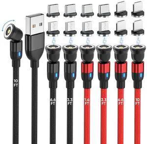 540 Rotating Magnetic Charging Cable [7-Pack, 1.6ft/3ft/3ft/6ft/6ft/10ft/10ft] 3 in 1 Nylon Braided Magnetic USB Cable for iProduct/Micro USB/Type C Device