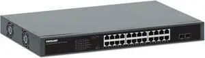 Intellinet 24-Port Gigabit Ethernet PoE+ Switch with 2 SFP Ports, IEEE 802.3at/af (PoE+/PoE) Compliant, 370 W PoE Power Budget, Two 1G SFP Open Slots, Self-Healing Network, Extend-mode