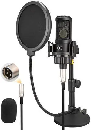 XLR Condenser Microphone with 26mm Large Diaphragm, Professional Cardioid Recording Studio Mic Kit with Metal Desktop Stand, Pop Filter for Streaming, Podcasting, Gaming, Voice-Over, Vocal, Youtube