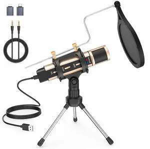USB Condenser Microphone, Lightweight Studio Mic for Streaming, Recording, Gaming, and Singing, Noise Cancelling, Metal Build
