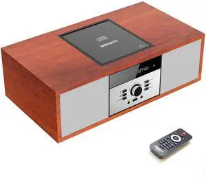Nostalgic Bluetooth Stereo System for Home, WISCENT Vintage Micro HiFi Systems CD Player,with Bluetooth Audio Streaming,FM Radio,USB Port,Aux-in,Earphone Port (Brown)