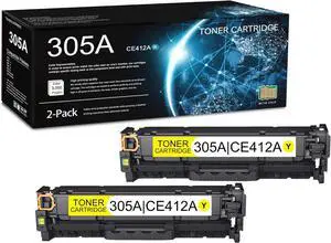 2 Pack 305A Yellow Toner Cartridge (with Chip) | Replacement for HP 305A Work with M351a M451nw M451dn M451dw M475dn MFP M475dw MFP M375nw | CE412A