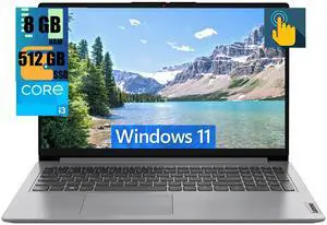 Lenovo Ideapad 1i 15 Laptop, 15.6" FHD (1920x1080) Touchscreen, Intel Core i3-1215U 6-core processor, Intel UHD Graphics, 8GB DDR4 512GB PCIe SSD, Wi-Fi, HDMI, Windows 11