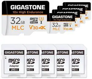 [10x High Endurance] Gigastone Industrial 32GB 5-Pack MLC Micro SD Card, 4K Video Recording, Security Cam, Dash Cam, Surveillance Compatible 95MB/s, U3 C10, with Adapter [5-Yrs Free Data Recovery]