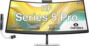 HP Series 5 Pro 34" WQHD VA Monitor with 5ms Response Time, Anti Glare, Flicker Free, 400 Nits Brightness, VESA Mount (100mm), Displayport, HDMI & Dockztorm USB Port Expander, Black/Silver Color