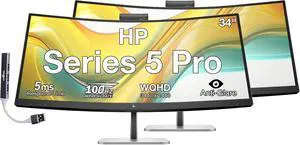 HP Series 5 Pro 534pm 34" WQHD VA Monitor with 5ms Response Time, Anti Glare, Flicker Free, VESA Mount (100mm), Displayport, HDMI & Dockztorm USB Port Expander, Black/Silver (9E0Z2UT#ABA) 2 Pack