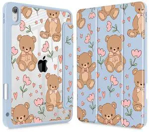 May Chen for iPad Air 11-inch M4/M3/M2 (2026/2025/2024), iPad Air 5th/4th 10.9 Inch - Shockproof Cover with Clear Back Shell & Penceil Holder Auto Wake/Sleep Stand Cover, Cute Teddy Bear